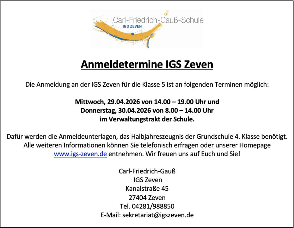 - Vergangener Termin: Mittwoch, den 11.02.2026 um 19.00 Uhr: Eltern-Informationsabend bei uns in der IGS für Eltern der 4. Klassen, gerne auch für Eltern von Schülerinnen und Schüler der 3. Klassen